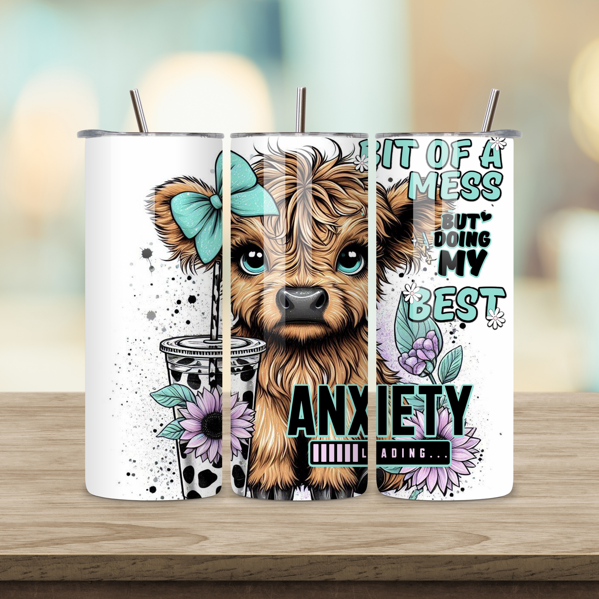 20oz Sublimation Tumbler - Highland Cow Anxiety Loading